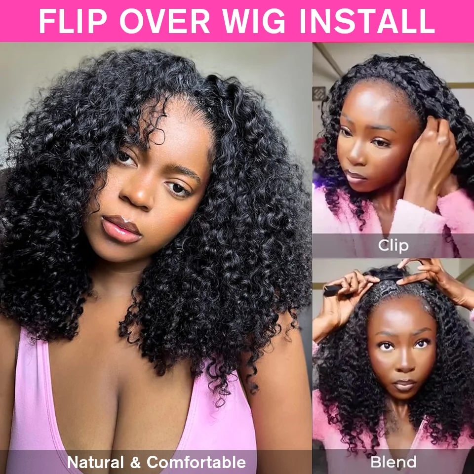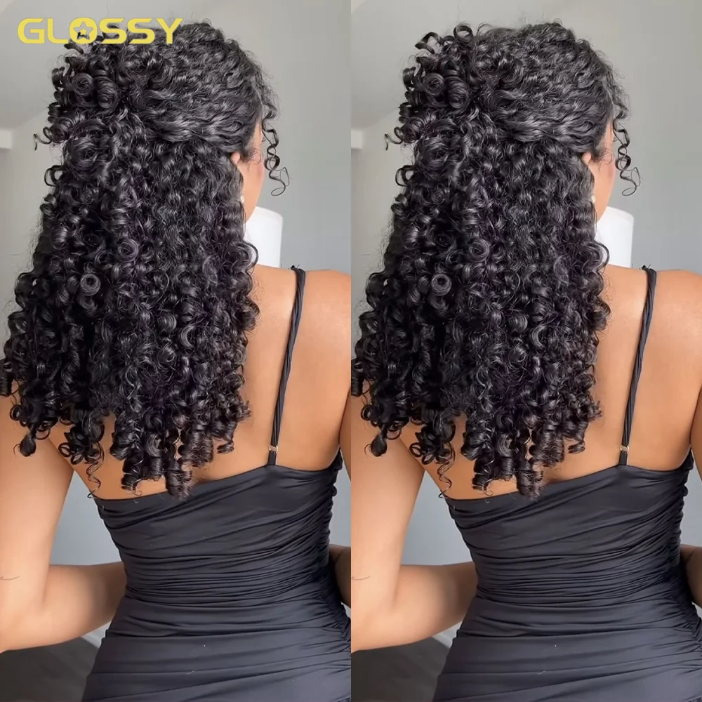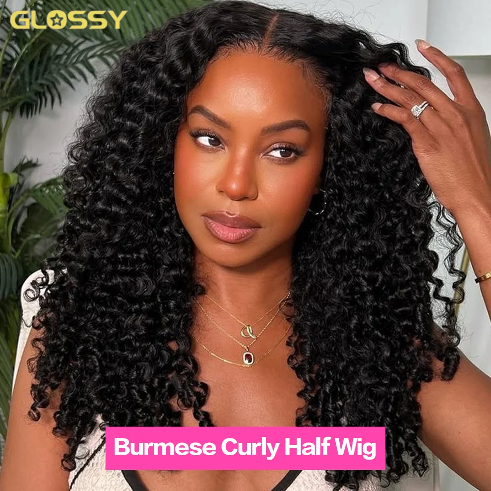 300% Density Burmese Curly Human Hair Wigs For Women Brazilian Glueless Kinky Culry 3 IN 1 Half Wig 100% Human Hair Wigs On Sale