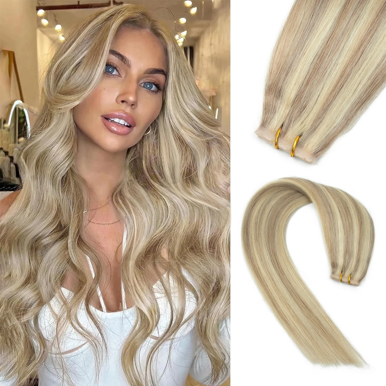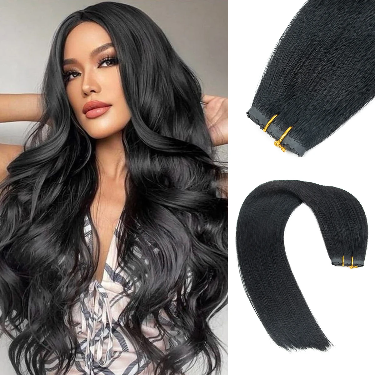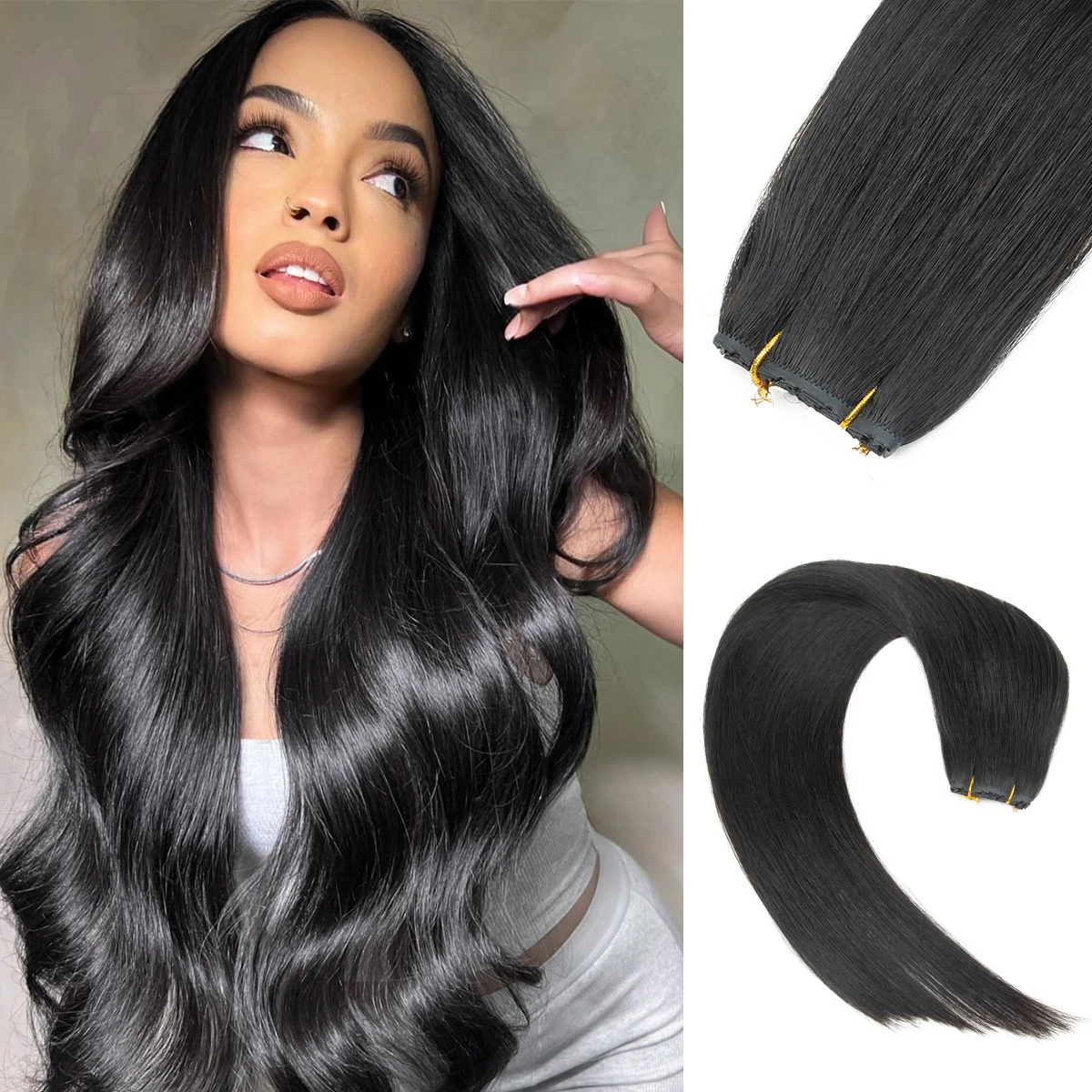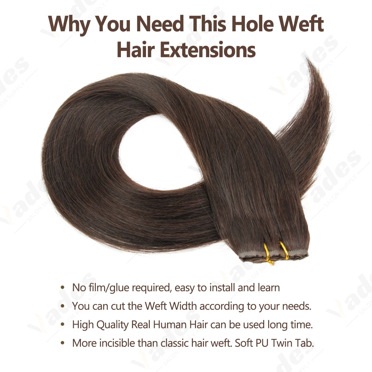 Butterfly Weft Hair Extensions Human Hair Invisible Flat PU with Hole Twin Tabs Hair Weft 12-24inch Microlink Application 40-50g