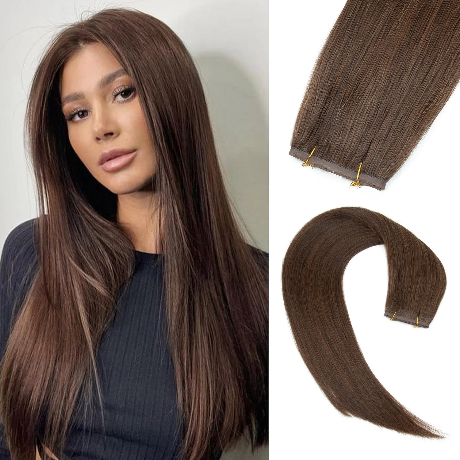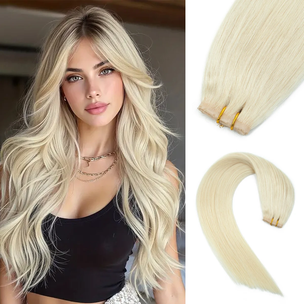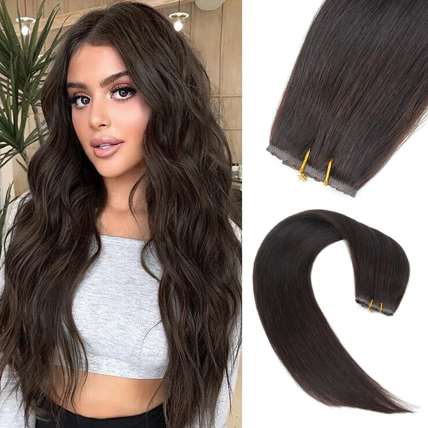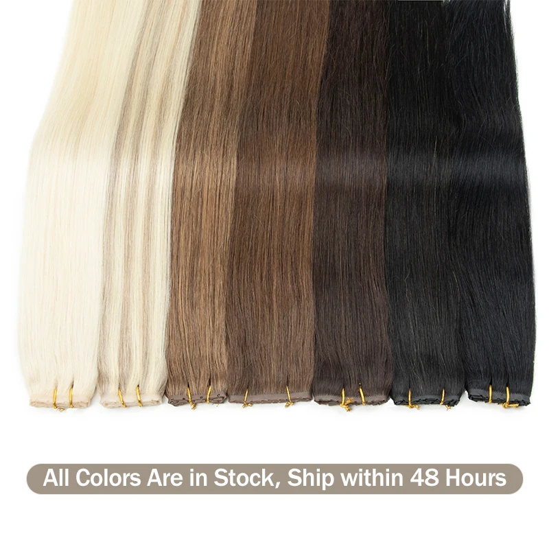 Butterfly Weft Hair Extensions Human Hair Invisible Flat PU with Hole Twin Tabs Hair Weft 12-24inch Microlink Application 40-50g